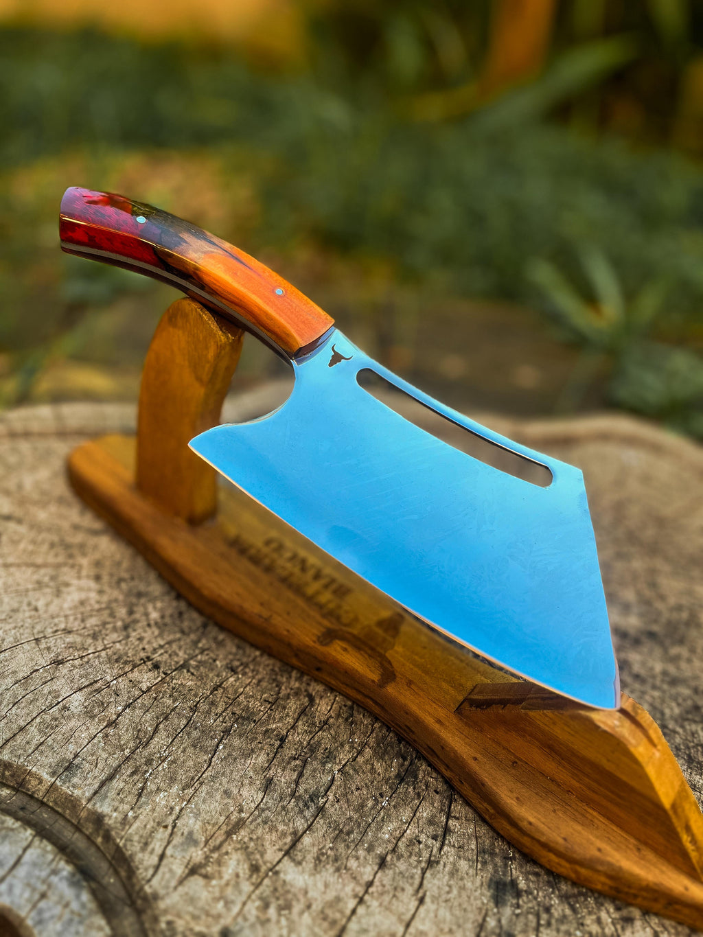 Lâmina de aço alemão 420C: Alta resistência e retenção de corte superior.